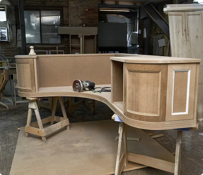 Die Fertigung der Möbel erfolgt handwerklich und auf Grundlage der zuvor erstellten Planung. Jedes Möbelstück wird einzeln gefertigt und auf die festgelegten Maße abgestimmt. Dabei stehen Maßhaltigkeit, Stabilität und eine saubere Verarbeitung im Vordergrund.